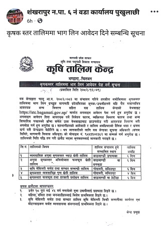 शंखरापुरका किसानहरूका लागि कृषि तालिमको सुवर्ण अवसर: चैत्र मसान्तभित्र आवेदन....