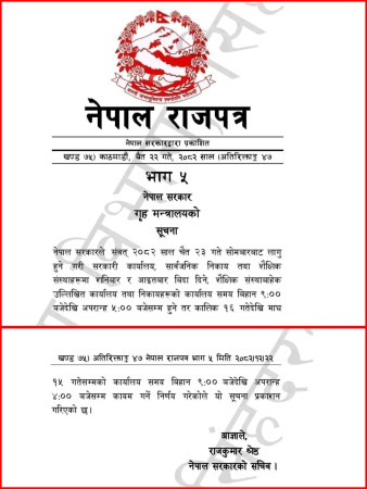 शनिबार–आइतबार सार्वजनिक बिदा, सरकारी कार्यालय समय ९ देखि....